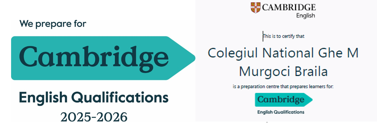Centrul Colegiul Naţional "Gheorghe Munteanu Murgoci" organizează examenele Cambridge în colaborare cu British Council şi beneficiază de o reducere de 10% din taxa oficială de înscriere pentru fiecare tip de examen pentru toţi candidaţii în sesiunea iunie 2026 ( cu excepţia Examenelor YLE ).